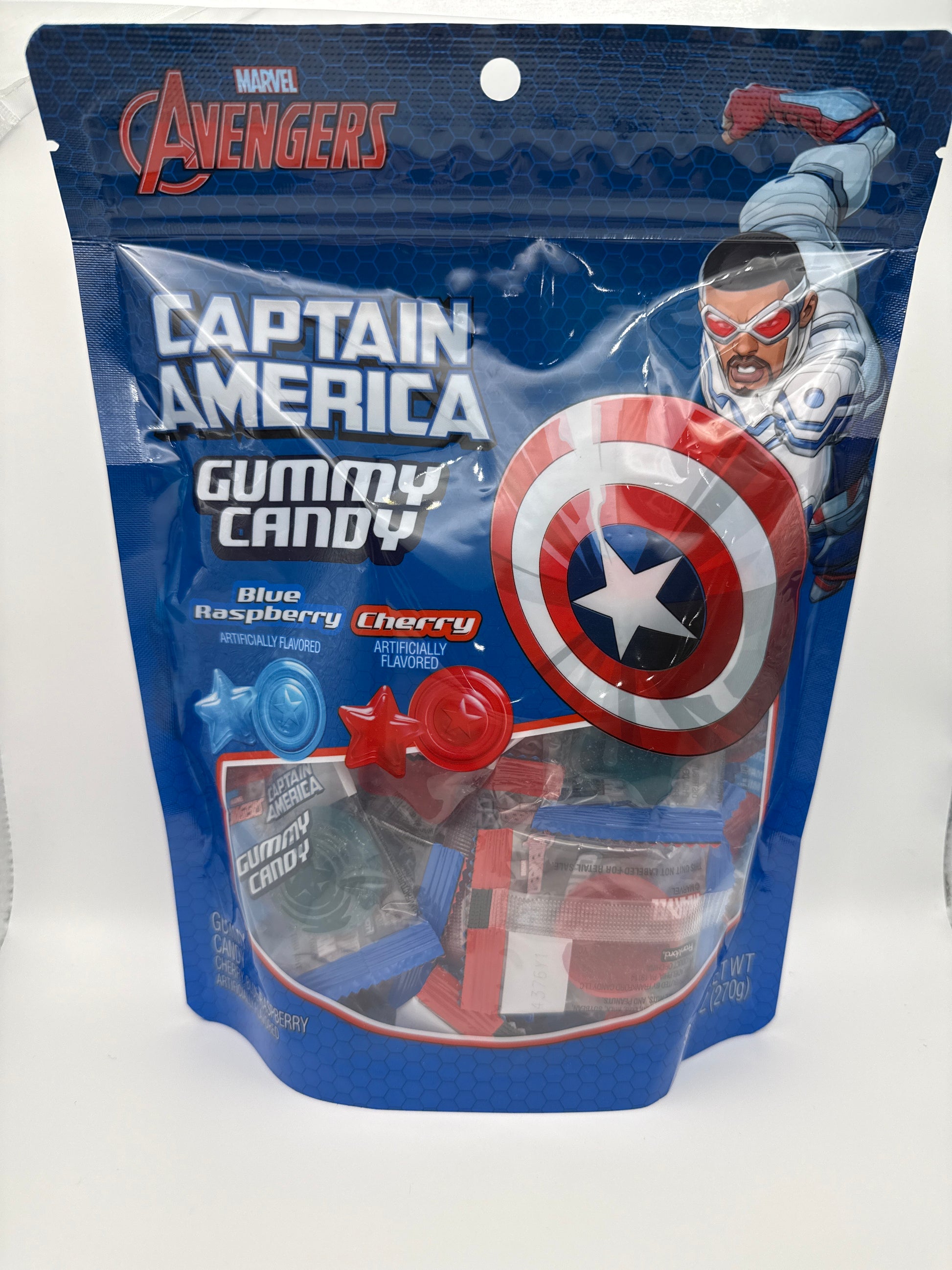 This bag is loaded with blue raspberry and cherry shield gummies—sweet, chewy, and ready to defend your sweet tooth. Official Marvel Avengers packaging makes it perfect for fans or as a themed gift.