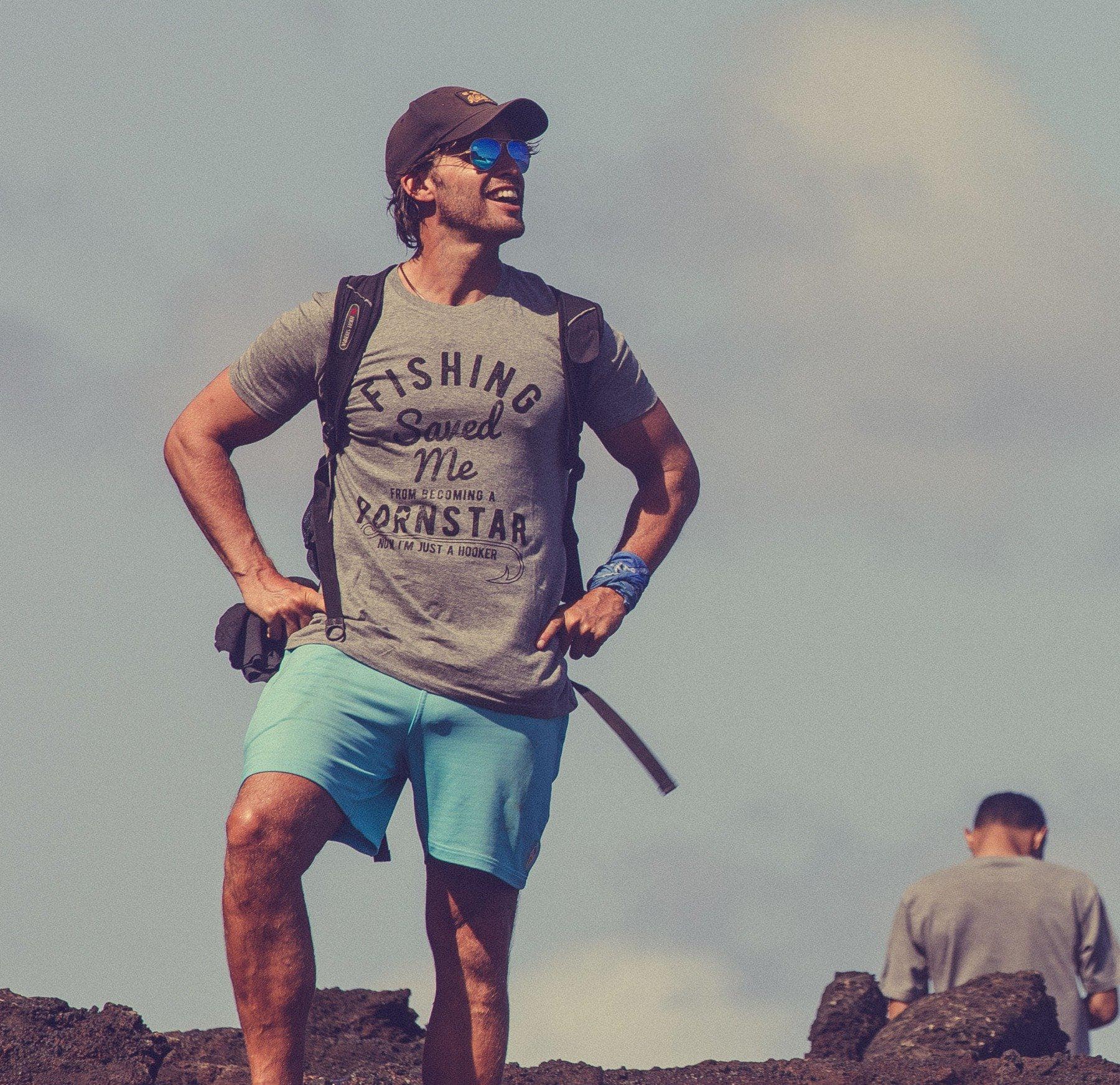Get laughs and nods from fellow fishermen with this bold "Fishing Saved Me from Becoming a Pornstar" graphic t-shirt. Perfect for guys who live for casting lines and cracking jokes, this shirt combines humor with everyday comfort.