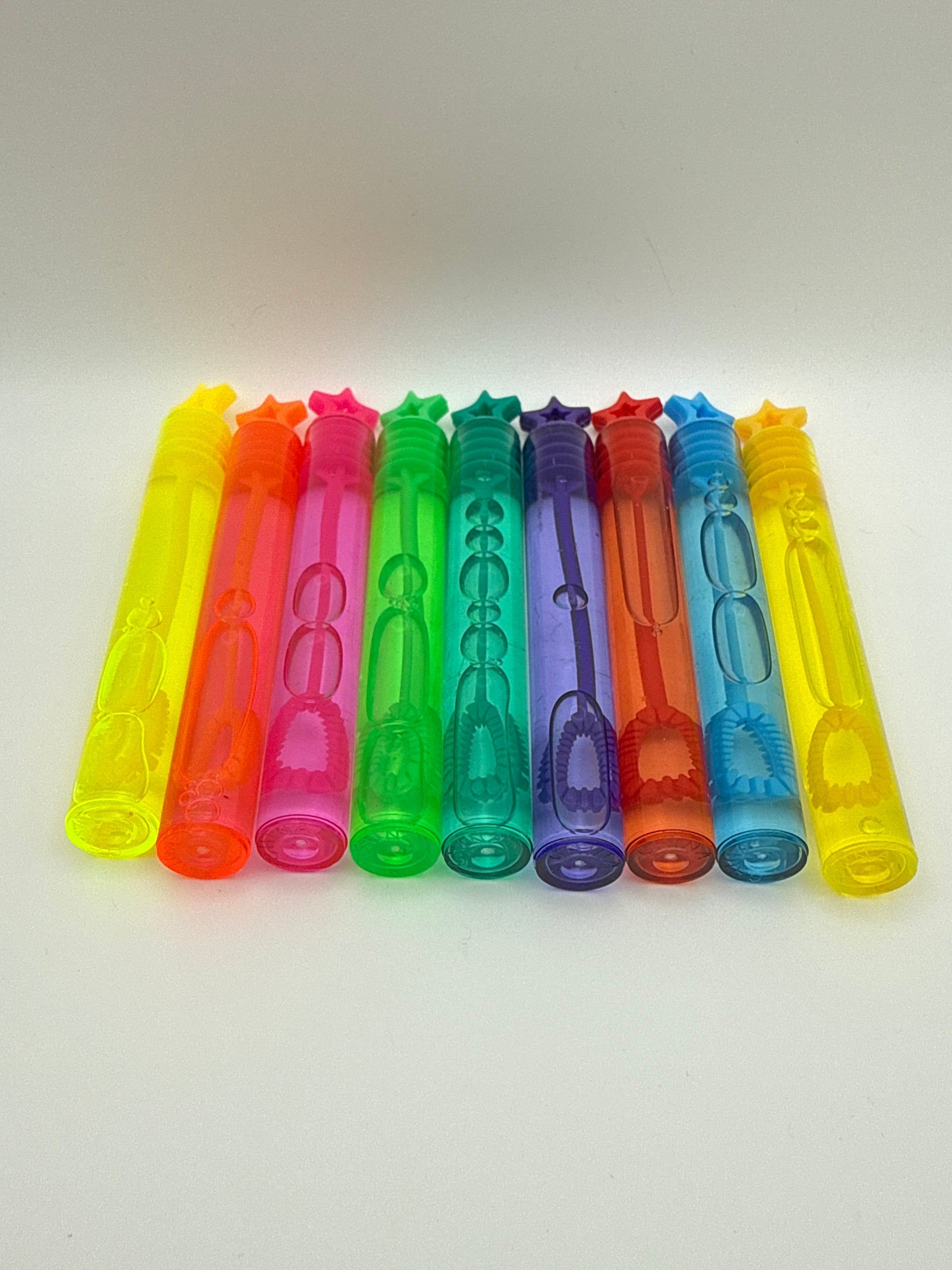 Perfect for parties, gift bags, or just blowing off steam — these colorful mini bubble wands are great for all ages. Each wand is filled and ready to go.