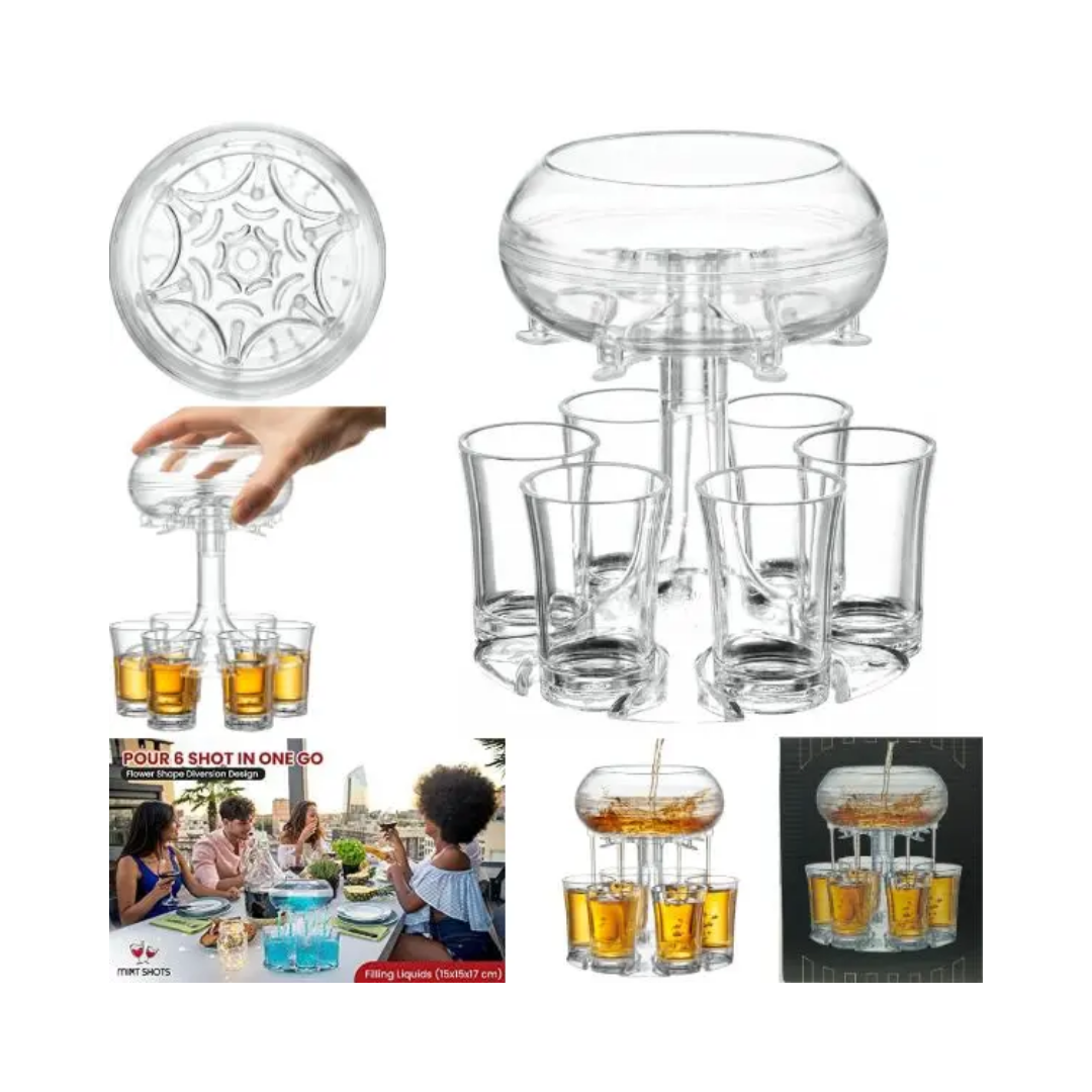 Pour six shots at once and instantly level up your party game. This clear acrylic shot dispenser makes serving fast, clean, and photo-worthy. Just fill the top, lift, and let gravity do the work—each shot pours evenly for your crew. Great for game nights, birthdays, or anytime you’re feeling extra.