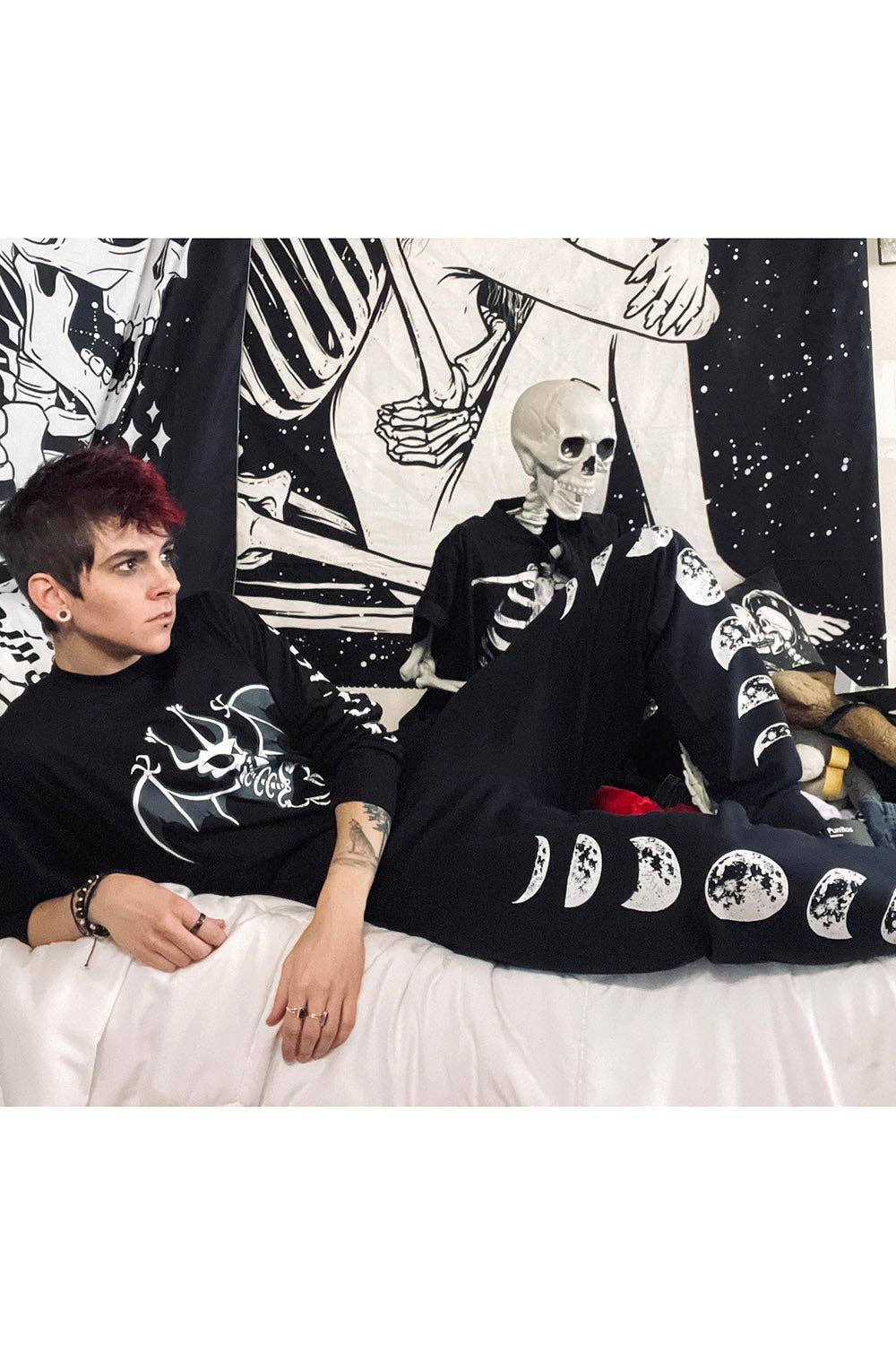 Introducing our Moon Phase Joggers โ where celestial style meets edgy comfort. These unisex joggers feature distressed details and moon phase prints that make a bold statement whether you're lounging, casting spells, or hitting the streets.