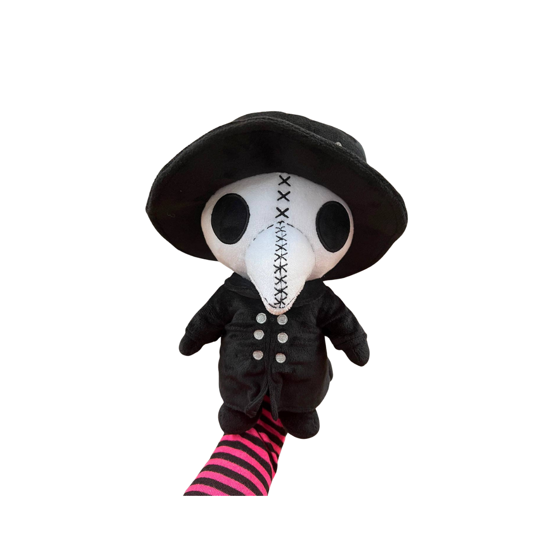 This spooky little doc is ready to bring the gloom and hugs. The Plague Doctor Plush Toy features a classic beaked mask, eerie cloak and hat, embroidered black stitches, and hauntingly adorable vibes.