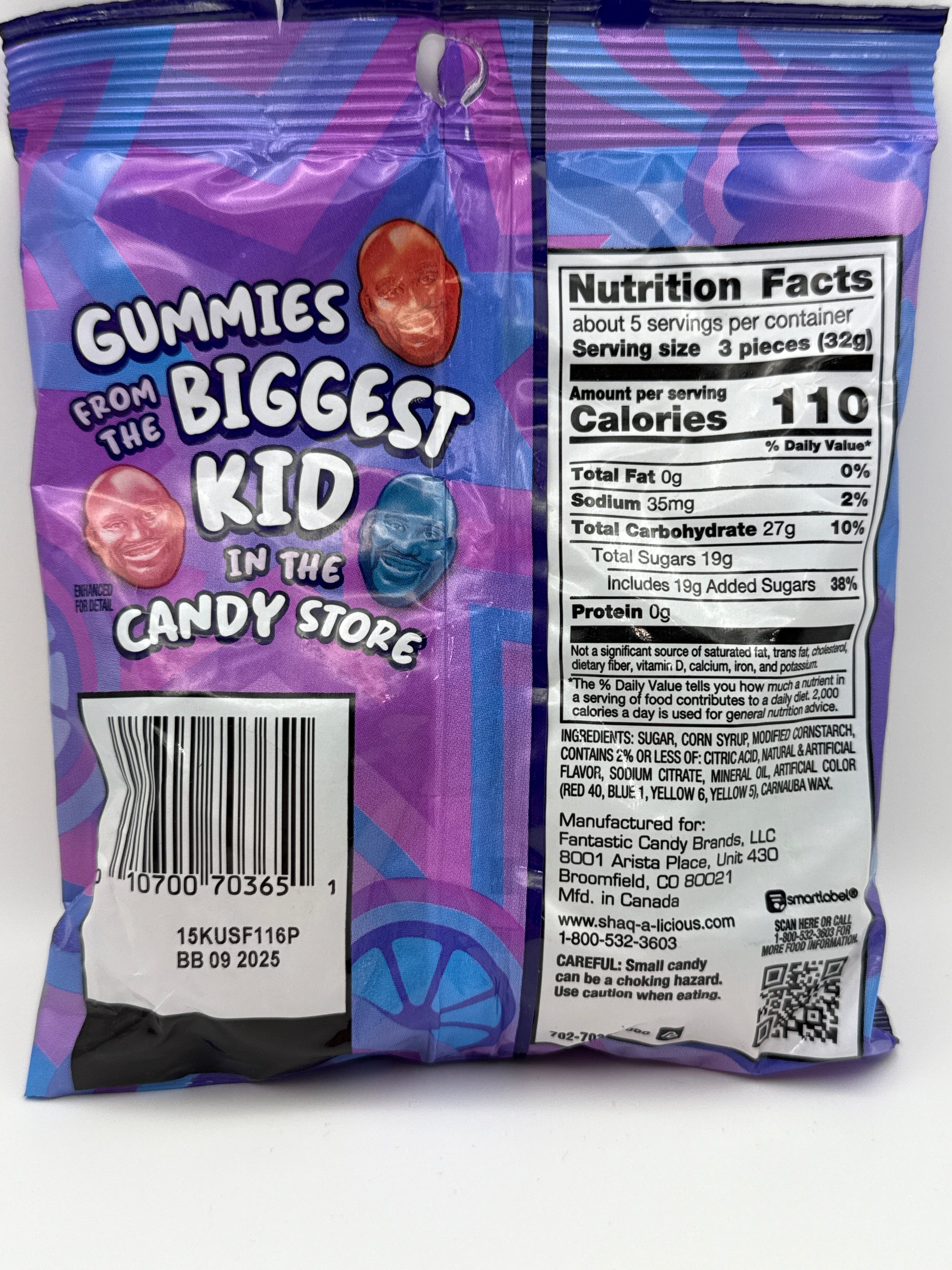 Big flavor. Bigger gummies. Shaqβs face never tasted so good. These extra-large gummies are packed with juicy flavor and legendary swagger, just like the man himself. Perfect for snacking, gifting, or flexing your candy game.