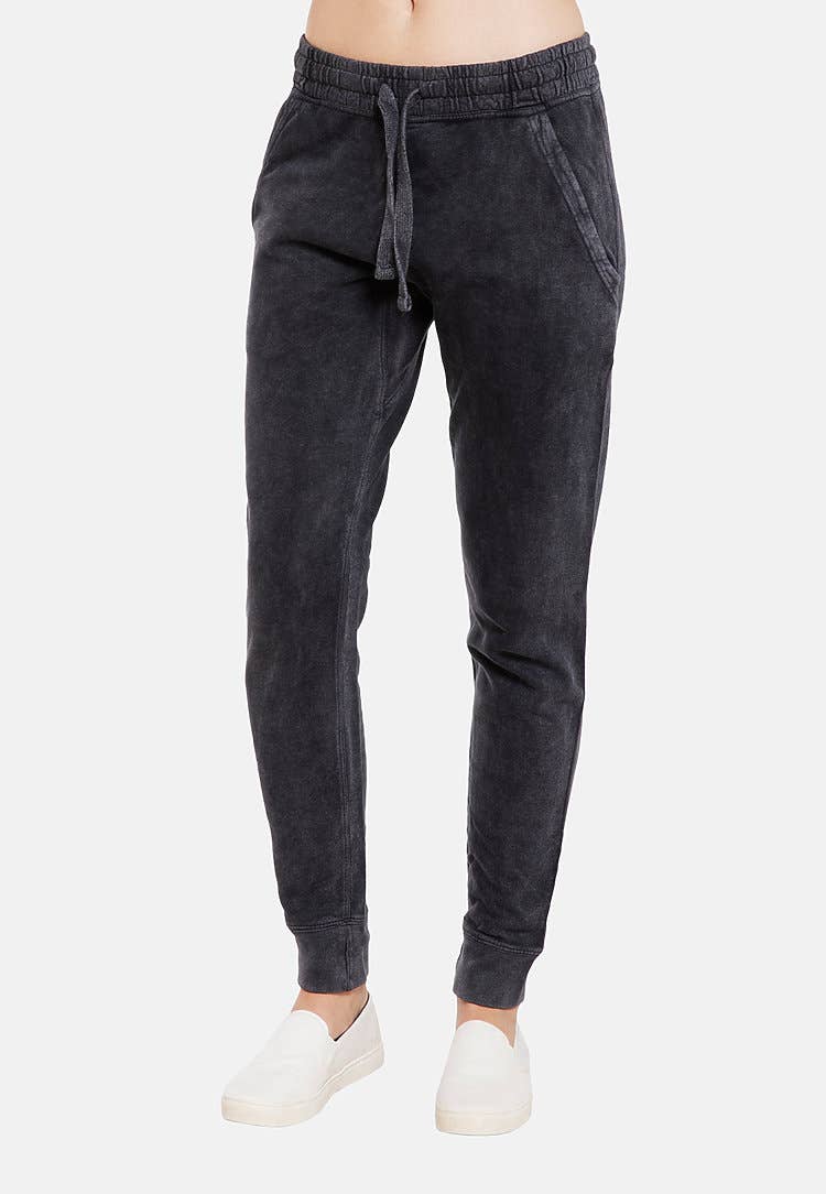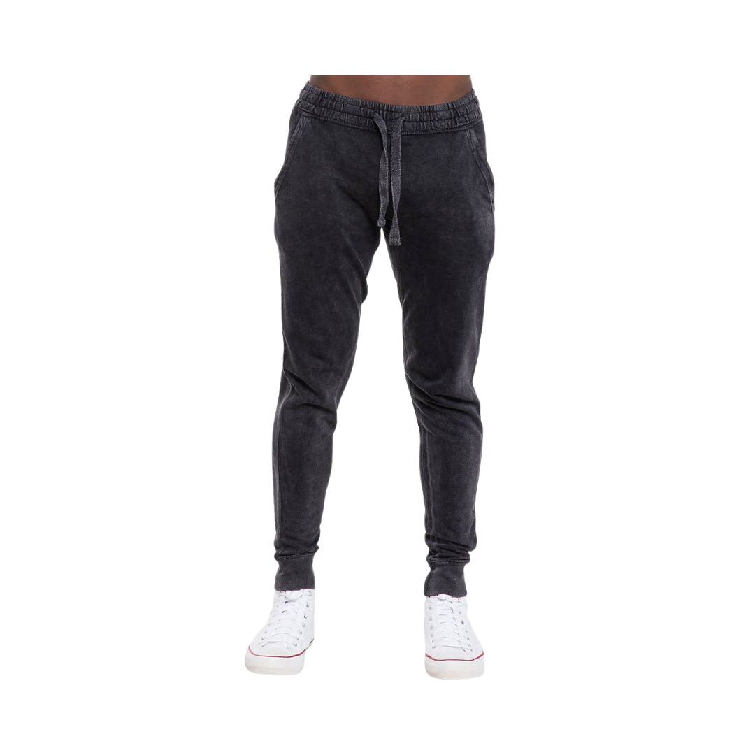 Our unisex jogger with a gusset insert at crotch for a drop crotch feel, now in our crazy popular vintage wash. 20 singles 100% cotton face yarn for perfect printability. Ribbed cotton cuff and waistband, drawstring at waist. Two side pockets and a back pocket.